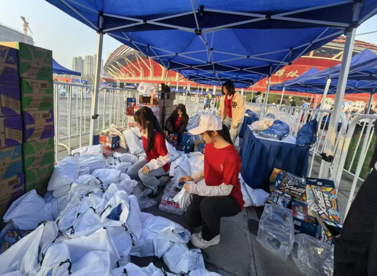 At 4:45 AM on November 3, the team leader Han Jiahe(teacher) led the 380 volunteers to the race site, where they arrived early to prepare for their duties.